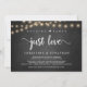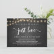 Rien de beau et de simple, Juste une fête d'amour, Carte d'annonce / invitation de mariage en fuite, dans un tableau noir rustique moderne, conception de guirlandes lumineuses. C'est parfait pour votre réception de mariage et votre fête de célébration après le mariage. Ajoutez vos coordonnées avec la même police / lettrage.