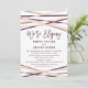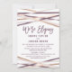 Cette carte "nous fuyons" avec guirlandes rose pâle et or rose est parfaite pour une fête moderne après une fugue amoureuse. Le design chic présente des lignes qui se croisent dans des tons de pourpre, rose pâle et d'un effet de feuille d'or rose pour un look géométrique. Les cartes RSVP sont vendues séparément.