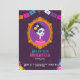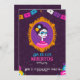 Invitation à la fête des morts. Invitation avec un portrait d'une fille morte et avec des couleurs et des drapeaux mexicains dans un style de dessin animé.