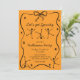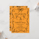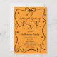 Black and Orange Whimsical Hand Drake Skeleton Bow Frame Halloween Party Invitation