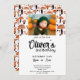 Halloween Champignons Orange Automne Photo Anniversaire Invitation. Un beau motif de champignons orange et noir aux couleurs de l'automne, le nom d'un enfant sur mesure dans un script branché. Une belle invitation à la fête d'Halloween ou d'automne.