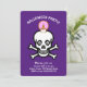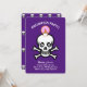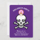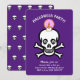 Invitation fête Halloween crânes effrayants sur fond violet royal. Tous les textes et chiffres sont prêts à être personnalisés.