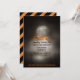 Invitation éffrayante à la fête d'Halloween- Arrière - plan hanté, ancien cimetière avec pierres tombales au clair de lune avec une pleine lune. Lit 'Vous avez été convoqué à une fête d'Halloween' en noir et orange couleurs d'Halloween. Détails de la fête d'Halloween, y compris les informations RSVP, en noir. Style effrayant, Goth en bas de la lettre dit "Portez une tenue éffrayante correcte pour éviter d'être hexée". Le dos a diagonale noir et orange rayures arrière - plan. Utilisez le bouton Customiser pour modifier l'apparence - styles, tailles, couleurs ou placement de police. Amusant, traditionnelle effrayante invitation Halloween prêt à être personnalisé avec vos propres détails de fête amusante.