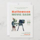Une invitation à la fête d'Halloween amusante mais élégante avec un thème de la soirée cinéma, avec un gremlin qui exploite un projecteur de film, en aquarelle. Élégant, moderne, simple et amusant, il plaira aux amateurs de soirées cinéma et de fête d'Halloween.
