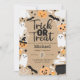 Célébrez votre petit ghoul ou gobelin avec cette adorable invitation d'anniversaire de Trick ou Treat! Parfait pour une fête sur le thème de l'Halloween, cet invitation festif présente des éléments d'Halloween ludiques comme des citrouilles, des fantômes, du maïs-bonbons, des toiles d'araignée, et plus encore, le tout dans un style mignon et convivial pour les enfants.