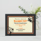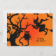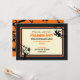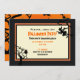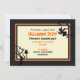 Invitation vos amis à votre fête d'Halloween avec cette invitation éffrayante comprenant une sorcière, des chauves-souris, une chouette, un arbre tordu et Jack O’Lanterns sur une pleine lune à l'arrière tandis que le texte est écrit dans un rectangle d'ivoire avec des bordures noires et orange et de petites images éffrayantes - sorcière, chauve-souris et hibou - sur le devant. com
