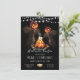 Jardin du soir Feu d'Halloween avec une chaîne de lumières scintillantes et des invitations S'mores et Jack-o'lanterne épouvantail. Tout libellé peut être modifié pour répondre à vos besoins. Idéal pour un anniversaire, une fête en plein air ou une aventure en camping autour de l'heure d'Halloween.
