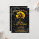 Halloween meurtre mystère invitation de la partie avec un texte, "Meurtre est dans l'air. Nous tuerions pour que vous vous joigniez à nous." L'image est une maison hantée éffrayante avec une sorcière volant devant une lune orange vif. Personnalisez avec toutes les informations de votre parti et RSVP.