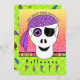 Invitation vos invités dans le style avec cette invitation à la fête d'Halloween sur le thème des pirates. Ce dessin est composé d'un crâne portant un timbre noir sur un oeil et d'un bandana violet décoré d'os. L'arrière - plan est un motif de bonbons de maïs et de vert citron vert avec des points. Le recto de la carte dit : "Ahoy matey ! Vous avez été invité à une fête d'Halloween". Le dos de la carte a un arrière - plan vert avec des bonbons et tous les détails de votre fête pour que vous personnalisiez. Conçu par des artistes ©Tim Coffey et Susan Coffey.
