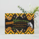 Cette invitation plate présente un motif de fond zigzagué pour Halloween et est surmontée d'un panneau vintage qui contient les informations de votre fête. Une main effrayante surgit du côté droit. Les mots "Halloween", "spooktacular" et "costume party" sont pré-imprimés.
