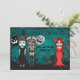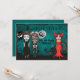 Halloween Spooktacular Girls And Ghouls Night Out - une amusante invitation à la fête de costume sur le thème de la fille - avec trois dames en robe fantaisie sur un arrière - plan de cour avec pierre de tête et squelette rampe - une invitation de fête d'Halloween moderne de Ricaso