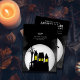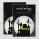 Ce design présente une fête d'Halloween, un spooktacular, avec une sorcière fantaisie sorcière, noir et blanc, design hanté maison avec une effroi éffrayante, amusant whimsical, mignon drôle, typographie, design minimaliste.