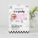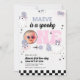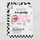 Retro Purple Halloween Éffrayant Un 1er Anniversaire Invitation Halloween éffrayant un thème de premier anniversaire invitation pour une petite fille avec deux fantômes super, une toile, araignées, étoiles, citrouilles mignons et texte rétro en noir et violet. Cette invitation éffrayante pour le premier anniversaire comporte également un motif à damier et est idéale pour une fête de premier anniversaire en octobre pour une petite fille.