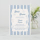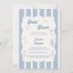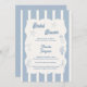 A hand drawn style Bridal Shower invitation with beach, coastal theme. A soft ivory and dusty blue striped colored background, with an ivory frame and dusty coastal blue elements. Personalize and add her name and the party details.