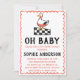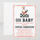 Celebrate the upcoming arrival with this charming rustic baby shower invitation featuring a hand-drawn goose illustration and playful “Oh Baby” typography. Designed with a farmhouse-inspired aesthetic, this invitation combines a classic black-and-white checkered pattern with soft coral accents and a whimsical scalloped border—perfect for a cozy, countryside-themed baby shower.