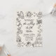 Vintage-inspired hand-drawn quirky sketches whimsical wedding invitation. Perfect for couples looking for a creative, lighthearted design with a nostalgic twist, this playful invitation features an off-white or softly aged background for a timeless vintage feel. The layout includes large hand-drawn illustrations that flow off the edges, creating an artistic, modern look with a touch of old-world charm.