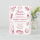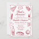 Whimsical and hand-drawn, this retro-style party design features a classic wine red color, a playful wavy frame, and illustrations of Italian-themed cuisine. Paired with elegant hand-lettered fonts, this design is perfect for adding a touch of vintage flair to your event. Ideal for rehearsal dinners, engagement parties, couple’s showers, or bridal showers—especially those with a pizza or pasta party theme.