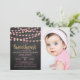 Célébrez en style avec ces super mignons coeurs d'amour suspendus "petite amoureuse" invitations photos de fête d'anniversaire. Le design présente un effet de parties scintillant rose et or accrochant les coeurs d'amour avec le libellé de typographie correspondant.