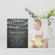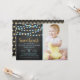 Célébrez en style avec ces super mignons coeurs d'amour suspendus "petite amoureuse" invitations photos de fête d'anniversaire. Le design présente un effet de parties scintillant bleu et or accrochant les coeurs d'amour avec le libellé de typographie correspondant.