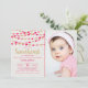 Célébrez en style avec ces super mignons coeurs d'amour suspendus "petite amoureuse" invitations photos de fête d'anniversaire. Le design présente un effet de parties scintillant rose et or accrochant les coeurs d'amour avec le libellé de typographie correspondant.