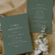 Cette invitation à saupoudrer de bébé vert neutre de la collection Hannah est parfaite pour un minimum de deuxième baby shower. Le design vert foncé de la forêt présente une typographie boho moderne et sans ornement avec un style minimaliste unique. Personnalisez le dos avec un faire-part de genre, des livres pour bébé, de la tombola de couche, un registre et/ou tout autre détail supplémentaire qui serait utile pour vos invités.