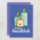 Bougies mignonnes et drôles saluant Hanoukka heureux. Conception personnalisable et modifiable. Utilisez vos propres mots, la couleur arrière - plan préférée, et même votre propre choix de polices disponibles dans le magasin. Avoir une atmosphère mignonne et kawaii avec de mignons dessins animés.