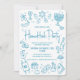 Invitation Hanukkah Teal Hand Drawn Doodles Whimsical Party