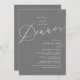 Mark the beginning of your forever with elegance using our romantic contemporary dark grey theme, wedding elopement celebration invitation card, "Happily Ever After Dinner". Perfect for couples extending their joyous occasion, this invitation exudes sophistication with a hint of playfulness, setting the stage for a memorable event. Adorned with a timeless modern script design theme, it adds a touch of refined charm to your festivities. Crafted by TeeshaDerrick, this invitation promises to beautifully capture your love story.