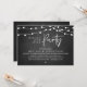 Woth joyius hearts, announce and share your happily ever after in style with our modern rustic string lights, cottage dark grey chalkboard theme design "Happily ever after party" wedding elopement or reception dinner and dancing celebration invitation card. It is ideal for couples who have decided to celebrate their best day. With its sophisticated yet playful design, this invitation is sure to set the tone for an unforgettable event. The invitation card features a modern and minimalist script design theme, adding a touch of timeless elegance to your celebration. Designed by TeeshaDerrick