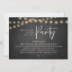 Woth joyius hearts, announce and share your happily ever after in style with our modern rustic string lights, grey cottage chalkboard theme design "Happily ever after party" wedding elopement or reception dinner and dancing celebration invitation card. It is ideal for couples who have decided to celebrate their best day. With its sophisticated yet playful design, this invitation is sure to set the tone for an unforgettable event. The invitation card features a modern and minimalist script design theme, adding a touch of timeless elegance to your celebration. Designed by TeeshaDerrick