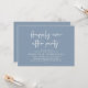 Celebrate the magical evening after “I do” with this sophisticated and romantic wedding reception dinner and dancing invitation — perfect for honoring the couple celebrating their big day. Design Highlights, Modern minimalist aesthetic with bold serif typography and flowing script, “Happily ever after party” headline sets a dreamy, timeless tone, Clean layout with ample space for all essential details (date, time, venue, RSVP info) and Crisp white text on dusty blue background — classic, chic, and effortlessly elegant. Perfect for Intimate rehearsal dinners, Pre-wedding celebrations with family and close friends and Couples who love modern calligraphy and understated luxury.