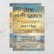 After wedding brunch invitation featuring an original fine art painting of a sunset at a stormy beach. The back shows a dreamy colored striped design.