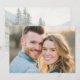 This wedding invitation features a warm, intimate photograph of two smiling individuals, capturing the essence of happiness and closeness. The design showcases a soft, natural color palette with a focus on realistic representation, highlighting fine details like hair texture and gentle lighting reminiscent of golden hour. The composition centers on their heads and shoulders against a blurred background, creating an inviting and personal atmosphere. Perfect for couples seeking a genuine and heartfelt touch for their special day, this invitation conveys love and joy through its authentic imagery.