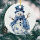 Invitation Happy Snowman Snowflakes Blue White Chinoiserie