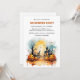 Invitation de la fête d'Halloween avec une aquarelle illustrant un cimetière hanté, des jack-o-lanterns et des chauves-souris.