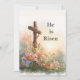 Celebrate the hope and renewal of Easter with this beautifully illustrated Christian greeting card. Featuring a wooden cross adorned with spring flowers and lilies, set against a soft sunrise sky, this watercolor design reflects the peace, faith, and promise of the resurrection.