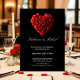 The bold red roses create a stunning contrast against the dark backdrop, while elegant typography completes the look of refined luxury. This romantic heart of roses design symbolizes deep passion and everlasting love, setting the perfect tone for your special day.