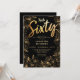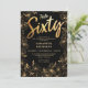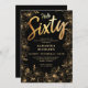 Invitation Hello Sixty Black and Gold Floral 60e anniversaire
