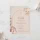 Belles aquarelles de fleurs d'herbe des pampas et arche chic dorée encadrent les détails de votre baptême ou christening dans une typographie moderne sur fond rose blush et une photo spéciale au verso. Conçu par Thisisnotme©