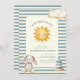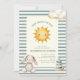 Celebrate the arrival of your little one with this adorable 'Here Comes the Sun' baby shower invitation. Featuring a charming watercolor sun graphic, a fluffy cloud, and a sweet bunny plush toy, this design sets a joyful and whimsical tone for your special event. The soft blue and cream striped background adds a touch of classic charm, making it perfect for a baby boy's shower. This invitation is designed to bring smiles and excitement as you share the wonderful news with your loved ones, announcing a baby shower in honor of Shannon.