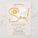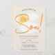 This cute boy's baby shower invitation says "Here Comes the Son" in modern script calligraphy and features watercolor sunshine and clouds. Original Watercolor © Michele Davies.