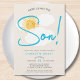 This cute boy's baby shower invitation says "Here Comes the Son" in modern script calligraphy and features watercolor sunshine and clouds. Original Watercolor © Michele Davies.