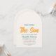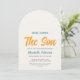 Invite family and friends to your sun-themed baby shower with this cute sunshine boys' baby shower arch invitation. It features the text "Here Comes The Son" in stylish typography with a brightly colored watercolor sun on a soft cream background. Easily customizable. Original Watercolor © Michele Davies.