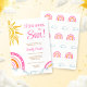 Celebrate your little sunshine with this “Here Comes the Sun” baby shower invitation. Featuring a soft boho rainbow, fluffy clouds, and a warm sun design, this invitation combines pink and brown tones for a sweet and stylish baby girl celebration. BBY013