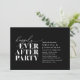 Annoncez et partagez votre bonheur toujours après dans le style avec notre carte d'invitation à la célébration de l'élévation mariage de classe moderne noir design (Heureusement toujours après la fête). Idéal pour les couples qui ont décidé de célébrer leur meilleure journée. Avec son design sophistiqué et ludique, cette invitation vous donnera le ton pour un événement inoubliable. La carte d'invitation présente un thème design de script moderne et minimaliste, ajoutant une touche d'élégance intemporelle à votre célébration. Conçu par TeeshaDerrick