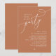 Annoncez et partagez votre bonheur toujours après dans le style avec notre design moderne de thème brun cuivre (Heureusement toujours après la fête) mariage elopement de fête carte d'invitation à la célébration. Idéal pour les couples qui ont décidé de célébrer leur meilleure journée. Avec son design sophistiqué et ludique, cette invitation vous donnera le ton pour un événement inoubliable. La carte d'invitation présente un thème design de script moderne et minimaliste, ajoutant une touche d'élégance intemporelle à votre célébration. Conçu par TeeshaDerrick