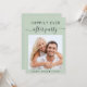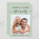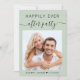 Invitation à la réception post-mariage à la sauce verte et chic avec votre photo "Happily Ever After Party" dans un mélange de lettres simples et un script swash tendance et vos prénoms et date de mariage ou de réception réunis par un coeur. Personnalisez vos détails de réception et ajoutez vos noms dans un script de type signature au dos.