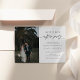 Célébrez votre nouveau départ dans le style avec cette charmante invitation à la réception de mariage. Le design combine à merveille une photo sincère des jeunes mariés avec l'expression "Happily Ever After Party" dans un script élégant, donnant le ton pour une célébration joyeuse et décontractée. Avec une disposition intemporelle, la carte offre un espace suffisant pour les détails de la réception, y compris le lieu, la date et les informations RSVP. L’arrière - plan blanc classique et la typographie minimaliste rendent cette invitation polyvalente, parfaite pour n’importe quel thème ou lieu, qu’il s’agisse d’une grange rustique ou d’un lieu urbain chic. Utilisez cette carte pour annoncer votre fête post-mariage à la famille et aux amis, créant de l'excitation pour le rassemblement. En tant que concepteur de cette pièce, mon but est de vous aider à commémorer votre journée spéciale avec une invitation qui se sent unique et mémorable comme votre histoire d'amour.