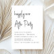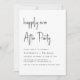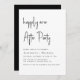 Réception de mariage minimaliste moderne en noir et blanc avec "Happily Ever After Party" dans un script chic, vos détails en lettres simples, et vos prénoms dans la typographie serif classique.
