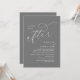 Marquez le début de votre éternité avec élégance en utilisant notre carte d'invitation à la célébration de l'elopement mariage à thème gris foncé contemporain, "Heureusement toujours après". Parfait pour les couples qui souhaitent profiter de leur joyeux événement, cette invitation exhale le raffinement avec un soupçon de jeu, préparant le terrain pour un événement mémorable. Décoré avec un thème design contemporain intemporel, il ajoute une touche de charme raffiné à vos festivités. Conçu par TeeshaDerrick, cette invitation promet de capturer magnifiquement votre histoire d'amour.
